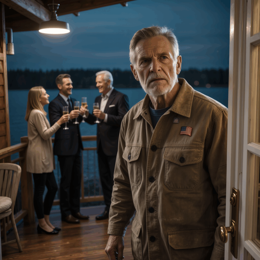 The air was sharp with November cold, that kind of dry chill that makes every nail in a wooden deck pop just a little. My old ceramic coffee mug sat on the railing where I’d left it last summer, the one with the faded American flag and the Duluth Fire Department shield printed across it, a retirement gift from my crew after thirty‑two years. Inside the house, somewhere down the hallway, a woman was crying. On the deck above me, champagne glasses clinked.