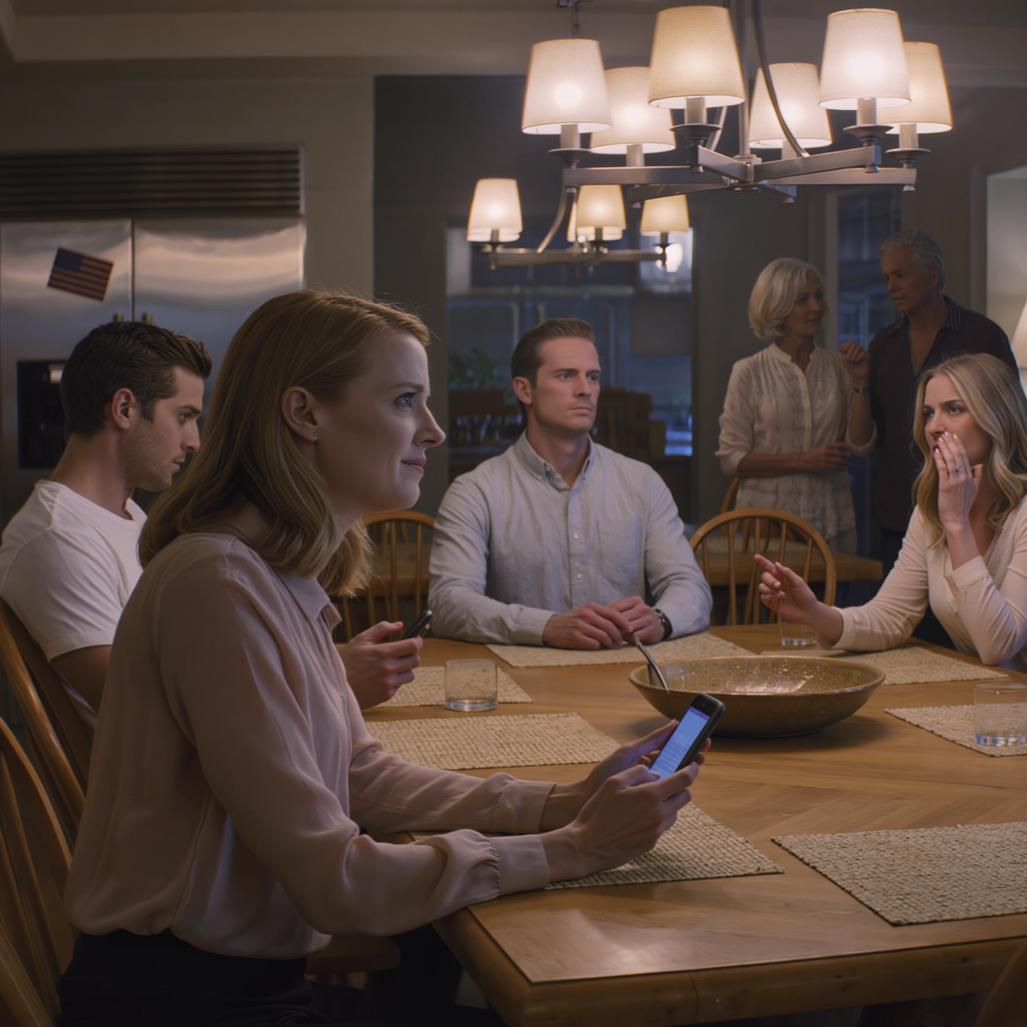 The night of the dinner, Adam and I pulled up in front of his parents’ house just as the sun was dipping low, painting the sky pink and gold. The flag on the pole in their front yard stirred in the breeze. Inside, the house smelled like roast chicken and garlic bread. My mother-in-law had gone all out—linen tablecloth, candles, the good plates she only brought out for holidays.