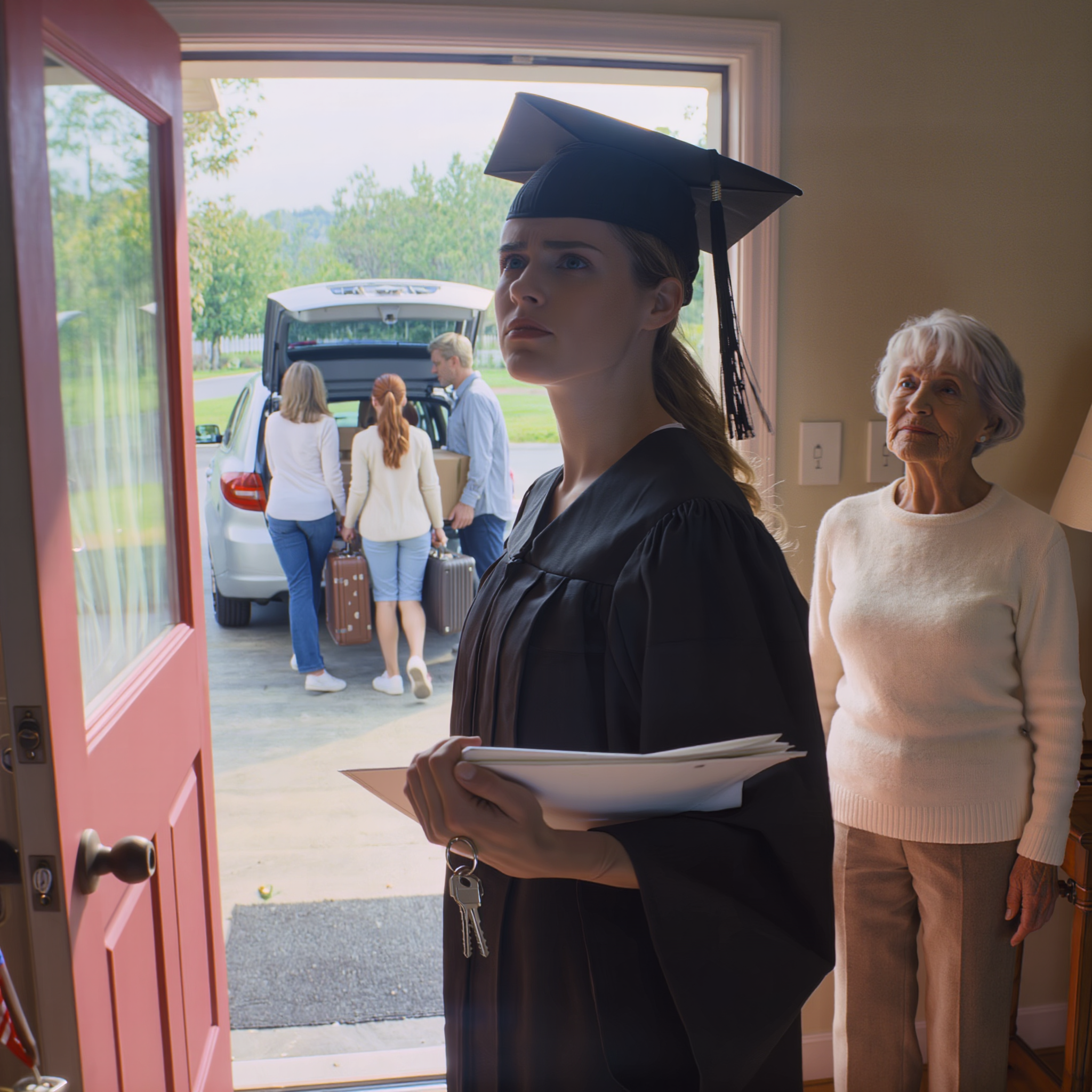 I didn’t argue. I didn’t flinch. I just stood there in my rented gown, the synthetic fabric sticking to the back of my neck, my fingers digging into the edge of the diploma case like it could anchor me to the ground. Around us, the crowd moved in waves—people cheering, moms crying, cousins filming everything on their phones while the principal’s voice echoed faintly from the speakers. Nobody had any idea that, for me, the ceremony had just ended with an ultimatum instead of a celebration.